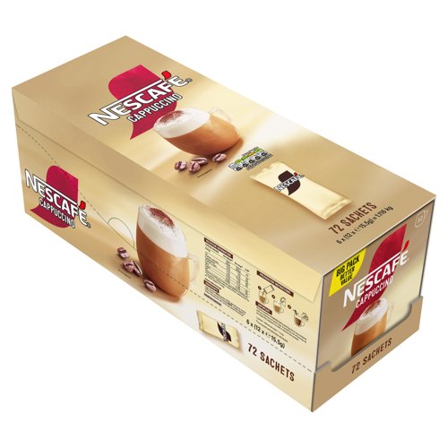 - Only quality coffee beans make their way into our NESCAFÉ Cappuccino sticks. Enjoy an expertly prepared cappuccino which is made from a blend of roasted coffee beans and using fresh milk from British dairy farmers. Each individual sachet is easy to prepare, whenever your customers fancy it.
