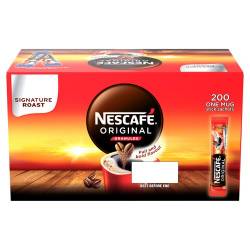 Nescafe One Cup Sachets each contain just the right amount for a delicious cup of morning or afternoon coffee. Simply empty the sachet into a cup, add hot water and milk or sugar to taste, then stir. The original, signature instant coffee from Nescafe combines medium roast Arabica and Robusta beans to create a deep, full-bodied flavour. Ideal for catering, meeting rooms and breakout areas. This pack contains 200 sticks.