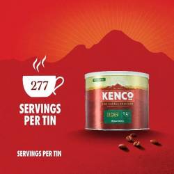 - Made from the finest Arabica coffee beans, this Kenco instant coffee is decaffeinated and expertly roasted to capture the rich Kenco taste, without the caffeine. This smooth coffee delivers a deliciously light flavour that can be enjoyed at any time of the day or night. Supplied in a 500g resealable tin and providing approximately 275 servings, this Kenco instant coffee is ideal for both home and office.