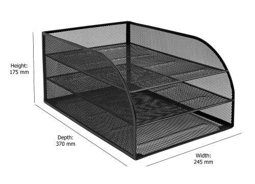 This Osco Mesh Assembled 3 Tier Letter Tray is ideal for storing A4 documents and letters. Ensure that your desk remains right on trend, as well as tidy, with the Osco Mesh range. This wire mesh tray has three tiers; it is sleek in its design and practical in that it provides plenty of space to store your important paperwork neatly. Ideal for organising mail, envelopes, magazines and other paperwork, this great desk accessory will keep your desk clutter free.