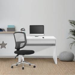 Stylish home office workstation, with spacious worktop made from 42mm hollow board, available in white and black high gloss finishes. Stylish flush drawer spans width of the unit, and open design allows maximum leg room.