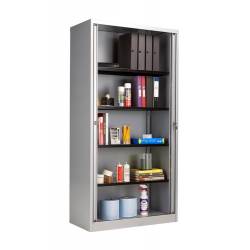 Bisley Essentials Steel Side Open Tambour 1985mm High Matching Shutter Doors Oak/Silver