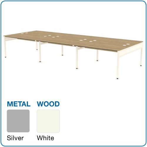 L&P LIBRA Rectangular Set of Six Bench (Back to Back) Desk 1400mm Silver/White