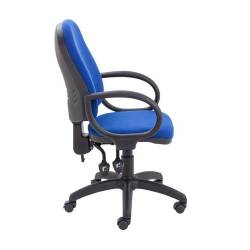 The Calypso 2 High Back Operator Chair with Fixed Arms is the perfect addition to any office space. With its 'permanent contact back' mechanism, this office chair provides optimal support and comfort for long hours of sitting. The deep cushioned seat and upholstered office chair fabric ensure maximum comfort and durability. The high back office chair provides excellent support for the neck and back, reducing the risk of strain and injury. The star base with five castors allows for easy movement and mobility around the office. Made from 100% man-made fabric, this office chair is easy to clean and maintain, making it a practical and stylish choice for any workspace. Invest in the Calypso 2 High Back Operator Chair with Fixed Arms for a comfortable and productive workday.