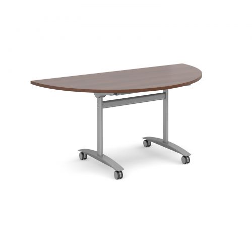 | Semi-circular tables 800mm deep with a fold away silver frame for easy storage |