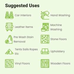 Dri-Pak Liquid Soap can be used to wash all fabrics, including delicates. It can also be used to clean leather, wood floors, laminate floors, hard surfaces, dishes, tiles and natural stone. You can also use it as a hand wash, shower gel and shampoo.