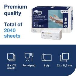 Tork Xpress Compressed Soft Multifold Hand Towels White H2: Save time restocking dispensers with 50% compressed paper hand towels that double dispenser capacity. Guests enjoy a premium experience with these soft and absorbent hand towels. One-at-a-time dispensing helps improve hygiene and reduce waste as guests only touch the towel they take. Our compact dispensers fit into small spaces for maximum convenience.