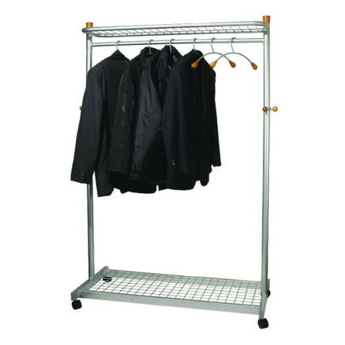 - This garment coat rack is suitable for larger offices and, as ii is wheeled, can be brought out for use in conferences and events. This strong, practical and elegant coat rack has the capacity for 20-30 coat hangers and also has two shelves for accessories and other garments. The four wheels allow easy transportation and the coat rack can be stored away when not in use. This coat rack comes supplied with six coat hangers.