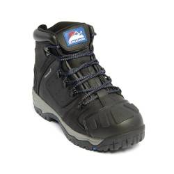 Himalayan 5206 S3/SRC Waterproof Black Safety Boot. With a steel toe-cap and anti-penetration midsole, high quality thick leather upper and strong side protection, this rugged safety is made for hard graft in almost any work environment.