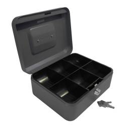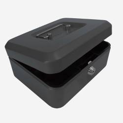 - The 8 Inch Steel Cash Box provides secure storage for cash, coins, and small valuables. Made from durable powder-coated steel, it features a fold-down carrying handle and a lift-out tray for organised storage. The secure cylinder lock ensures the protection of valuables, making it suitable for various environments.