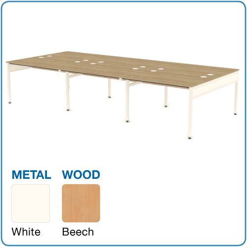 L&P LIBRA Rectangular Set of Six Bench (Back to Back) Desk 1200mm White/Beech