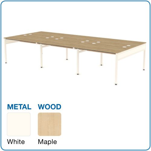 L&P LIBRA Rectangular Set of Six Bench (Back to Back) Desk 1200mm White/Maple