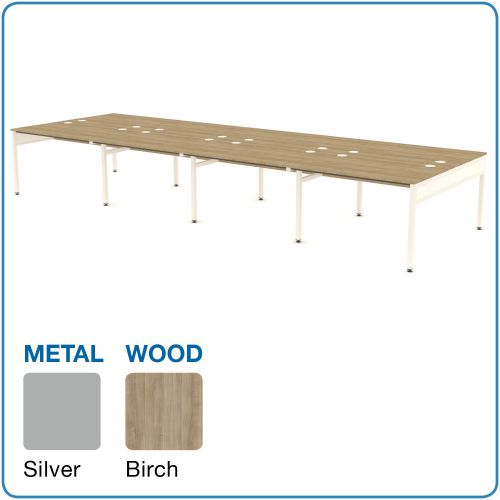 L&P LIBRA Rectangular Set of Eight Bench (Back to Back) Desk 1200mm Silver/Birch