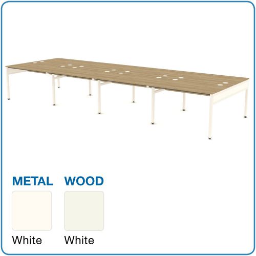 L&P LIBRA Rectangular Set of Eight Bench (Back to Back) Desk 1200mm White/White