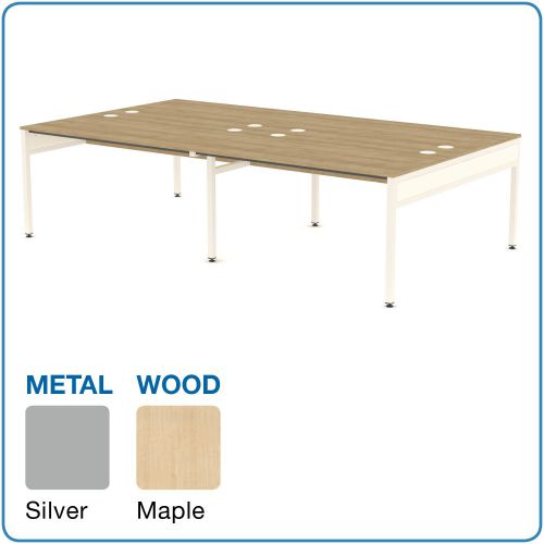 L&P LIBRA Rectangular Set of 4 Bench (Back to Back) Desk 1400mm Silver/Maple