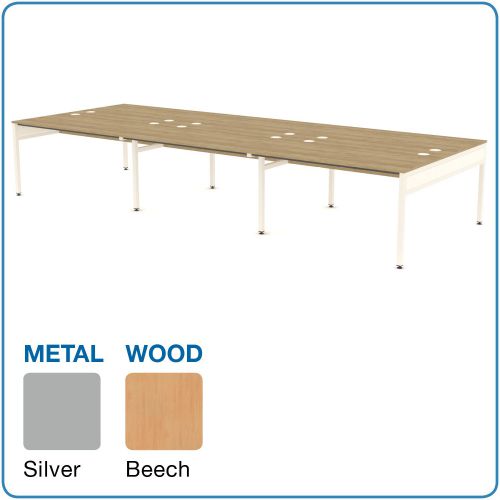 L&P LIBRA Rectangular Set of Six Bench (Back to Back) Desk 1400mm Silver/Beech
