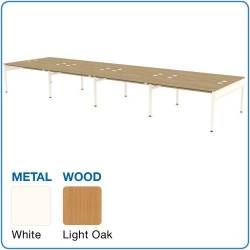 L&P LIBRA Rectangular Set of Eight Bench (Back to Back) Desk 1400mm White/Light Oak