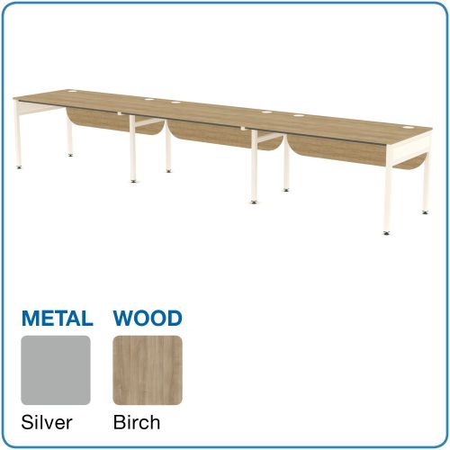 L&P LIBRA Rectangular Set of 3 Desks (Side by Side) 1400mm Silver/Birch