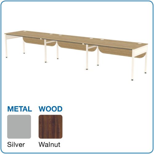 L&P LIBRA Rectangular Set of 3 Desks (Side by Side) 1400mm Silver/Walnut