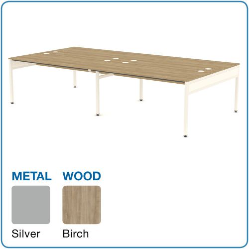 L&P LIBRA Rectangular Set of 4 Bench (Back to Back) Desk 1600mm Silver/Birch