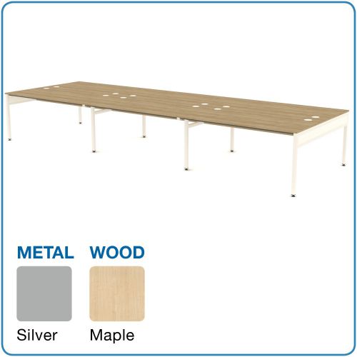 L&P LIBRA Rectangular Set of Six Bench (Back to Back) Desk 1600mm Silver/Maple