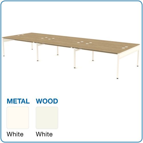 L&P LIBRA Rectangular Set of Six Bench (Back to Back) Desk 1600mm White/White