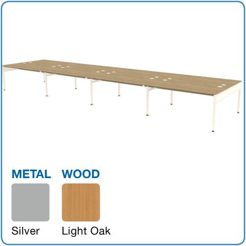 L&P LIBRA Rectangular Set of Eight Bench (Back to Back) Desk 1600mm Silver/Light Oak