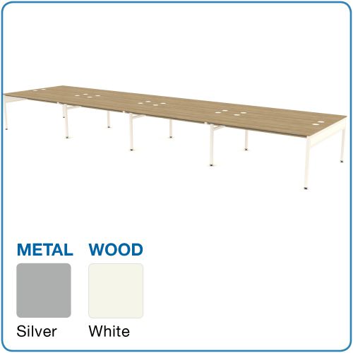 L&P LIBRA Rectangular Set of Eight Bench (Back to Back) Desk 1600mm Silver/White