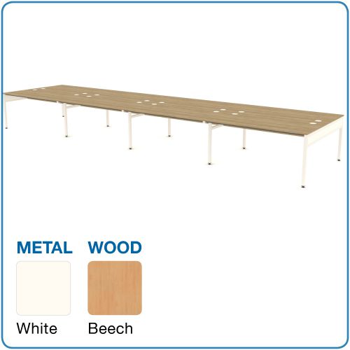 L&P LIBRA Rectangular Set of Eight Bench (Back to Back) Desk 1600mm White/Beech