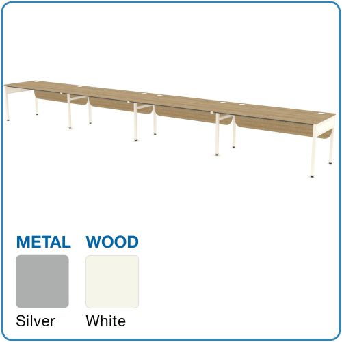 L&P LIBRA Rectangular Set of 4 Desks (Side by Side) 1600mm Silver/White