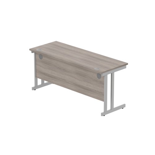 Office Rectangular Desk with Steel Double Upright Cantilever Frame (FSC) 1600X600 Alaskan Grey Oak/Silver