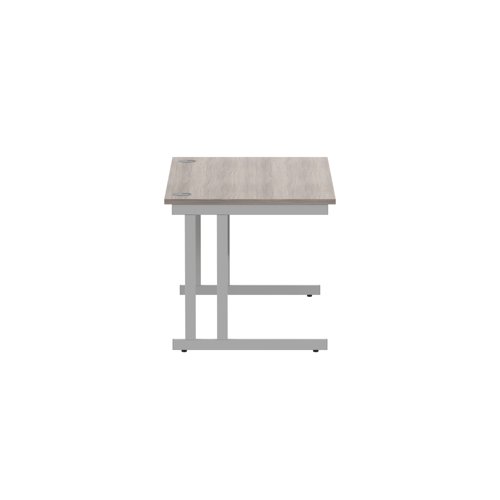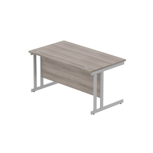 Office Rectangular Desk with Steel Double Upright Cantilever Frame (FSC) 1400X800 Alaskan Grey Oak/Silver