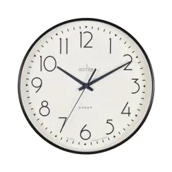The Acctim Earl Wall Clock is a clean and stylish clock with a glass lens. This retro lead design is easy to read and lends presence without being overpowering. The clock features non-ticking sweep movement and a quartz movement. The clock is 250mm in diameter with a black edge. The clock requires 1 x AA battery (not included).