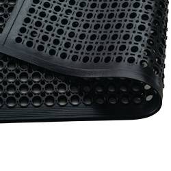 - Durable and hard wearing 100% recycled natural rubber construction. Extremely versatile for use anywhere that you need anti-fatigue and dirt / moisture removal capabilities. The honeycomb style hole structure enables excellent scraping of foot wear to remove dirt, debris and moisture. The open-top design traps dirt and moisture, allowing it to fall to the floor below. Also highly effective as an outdoor entrance mat. Natural rubber structure provides the perfect combination of durability, slip resistance and comfort.
