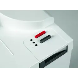 The intimus 100CP5 1.9 x 15mm high security cross cut shredding machine, for everyday paper destruction in a busy, small office. It's dust free designed housing sits inside a robust wooden cabinet. It has an integrated auto reverse function for easy removal of over loaded paper. Warning lights for stand-by, bin full, door open and paper jam. 56 Db for quiet operation in the office. It comes with a 2 years manufacturers warranty and a 30 year cutter warranty. Made In Germany. 13 sheet capacity on 80gsm paper. 100L bin. Mounted on rollers for easy mobility. Sturdy, long lasting, high quality, very quiet, market leading machine.